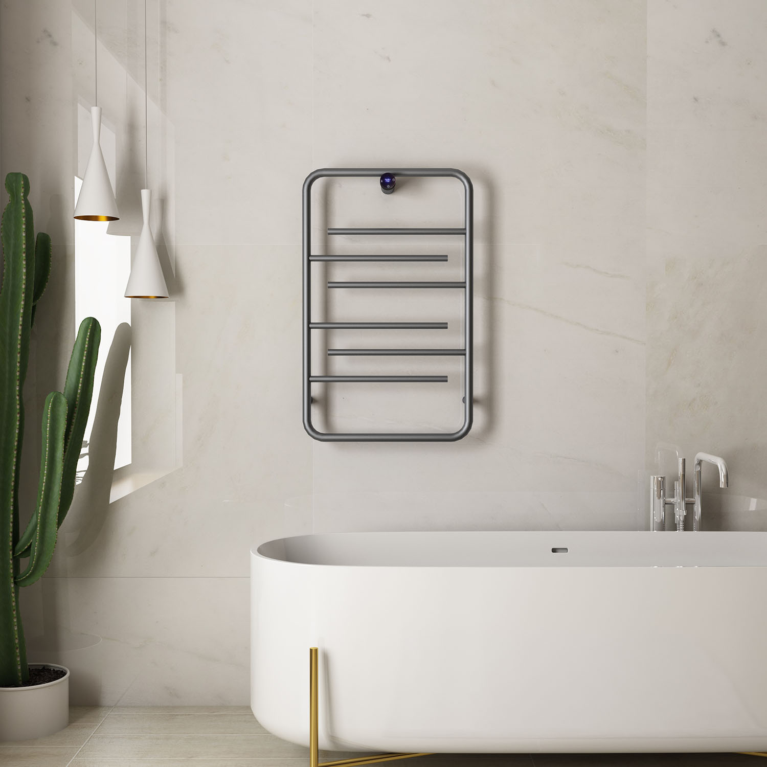 7桿液顯旋鈕開關(guān)電熱毛巾架 7 bar LCD display knob switch heated towel rail 材質(zhì)Material:SS201/SS304 功率Power:220V/75W 表面Surface:Gold 金色 尺寸Size:540*75*832mm 包裝Ctn size:590*75*880mm